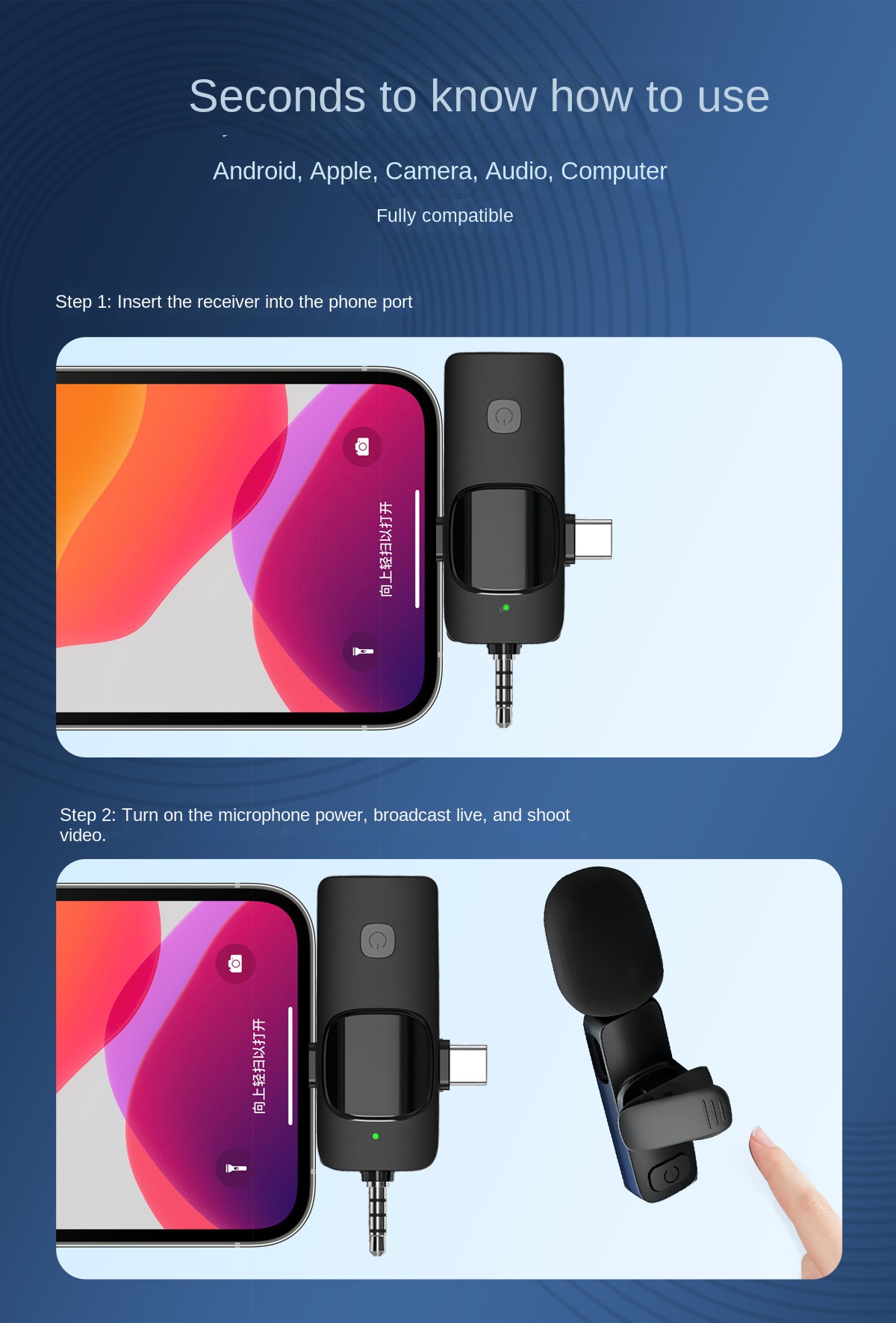 Crystal-clear HD sound with advanced noise reduction. Perfect for live streaming, interviews, KTV, and professional recording. Wireless, portable, and easy to use.